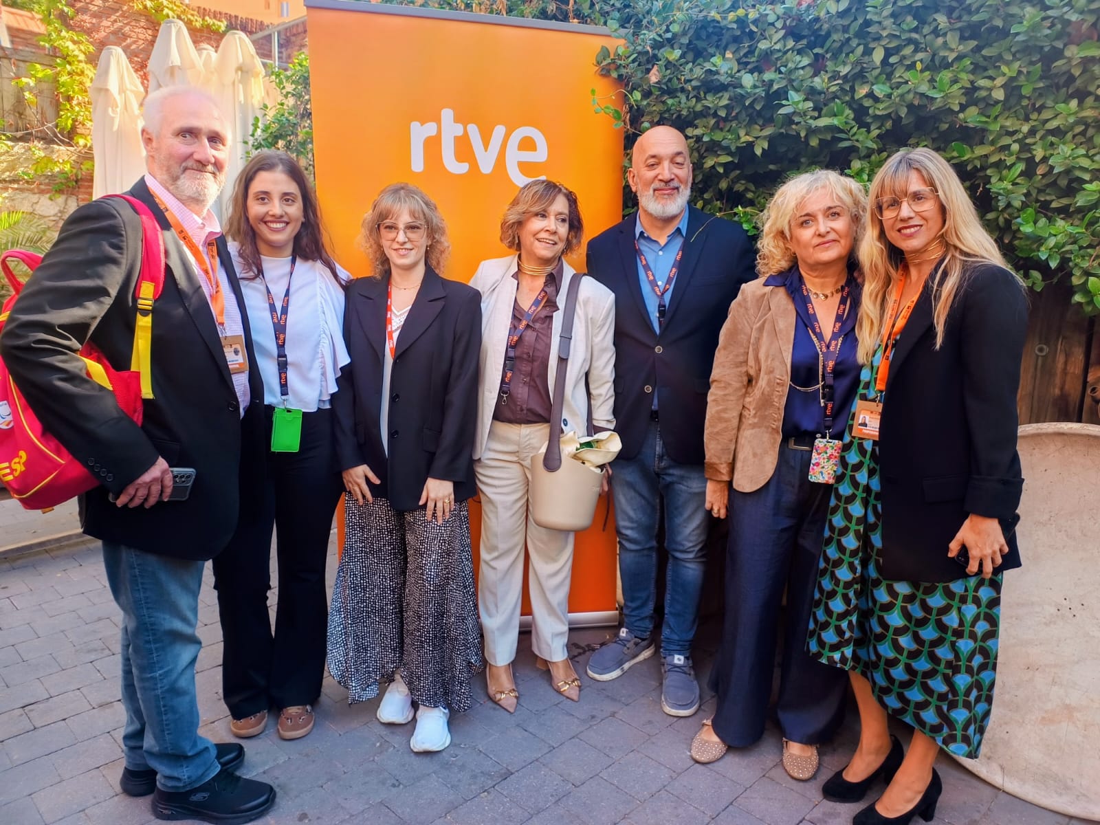 Jesús Molina Uruñuela y Javier Quevedo Pérez con el  demás equipo de RTVE