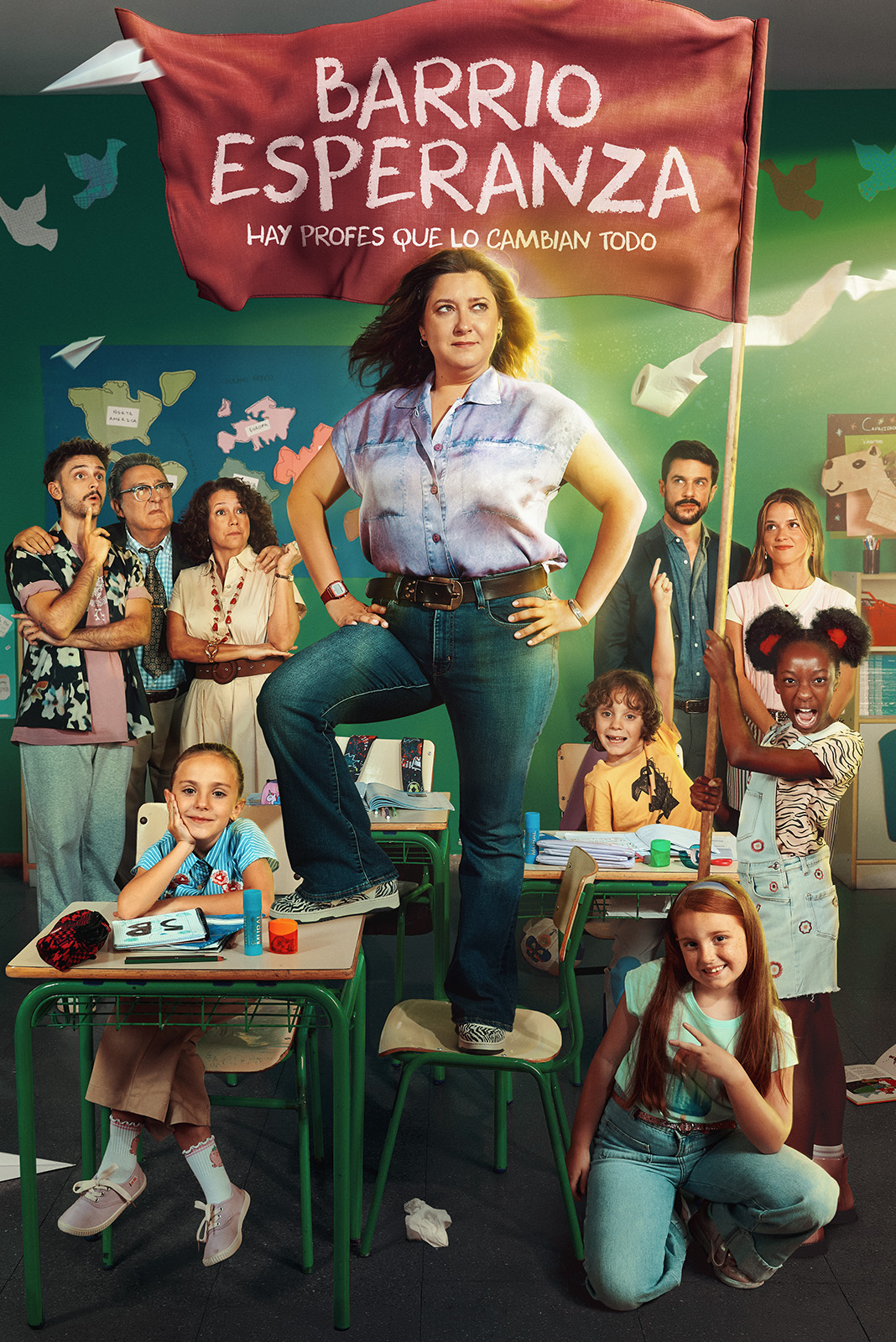 Grabada en un colegio como escenario principal, Barrio Esperanza es una comedia social con humor ácido y apta para toda la familia. La serie resalta la importancia de la enseñanza pública y las segundas oportunidades. Su protagonista, Esperanza —interpretada por Mariona Terés— es una maestra de primaria cuyo pasado, que la llevó a prisión, se convierte en su mayor fortaleza para enfrentar los retos del aula.