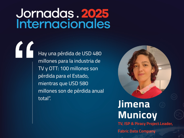 Durante el primer panel, Jimena Municoy, de Fabric Data Company, reveló que la industria pierde USD 480 millones anuales, de los cuales USD 100 millones afectan al Estado, y señaló que Uruguay, Colombia, Paraguay y Perú figuran entre los países con mayor consumo de contenidos pirateados.