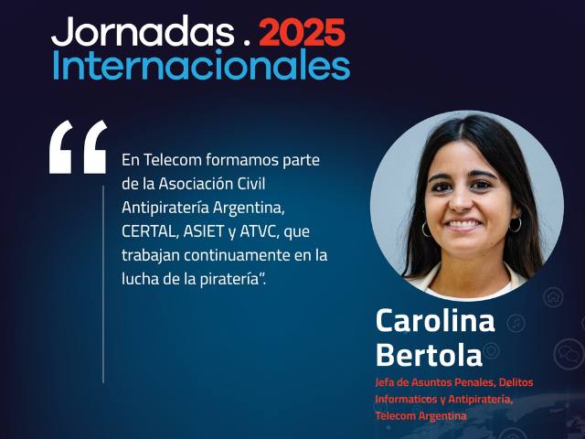 El cierre del seminario estuvo a cargo de Carolina Bertola, jefa de Asuntos Penales, Delitos Informáticos y Antipiratería de Telecom Argentina, con la ponencia “Construir un frente común en defensa del sector y los usuarios”. En el detalló las acciones que realiza la empresa para combatir la piratería, dentro de ellas destacó el presentar denuncias penales.