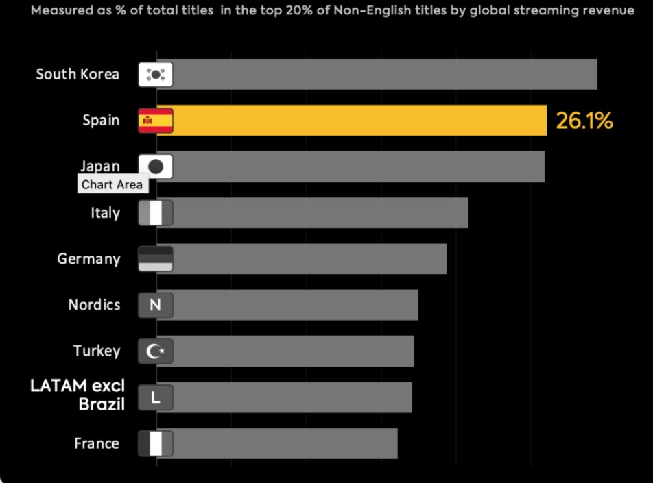 “La tasa de éxito del 26,1 % en España, la más alta de Europa y Latinoamérica, solo superada por Corea, combinada con un aumento del 63 % en la demanda en Asia y un claro impacto en los suscriptores de los principales servicios de streaming, muestra una oferta amplia y rentable”, señaló Jaime Otero, vicepresidente de Alianzas de Parrot Analytics.