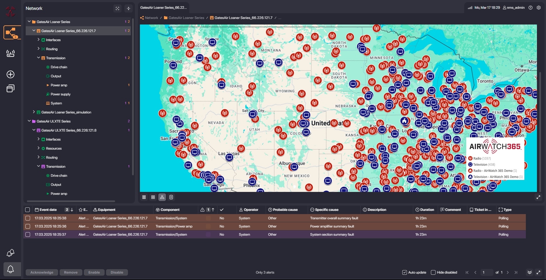 El próximo mes, en IBC2025, el servicio de monitoreo remoto AirWatch365 se estrena en el extranjero, con presentaciones visuales del entorno de monitoreo basado en el NOC, visibles para los técnicos de GatesAir. Disponible a través del programa GatesAir Care, este servicio proporciona a las emisoras de televisión y radio un equipo dedicado de expertos en RF de GatesAir para monitorear el rendimiento del transmisor, analizar las condiciones de RF y responder proactivamente a los problemas que afectan la calidad de la experiencia y el tiempo de funcionamiento. GatesAir expone en el stand 8.B75.