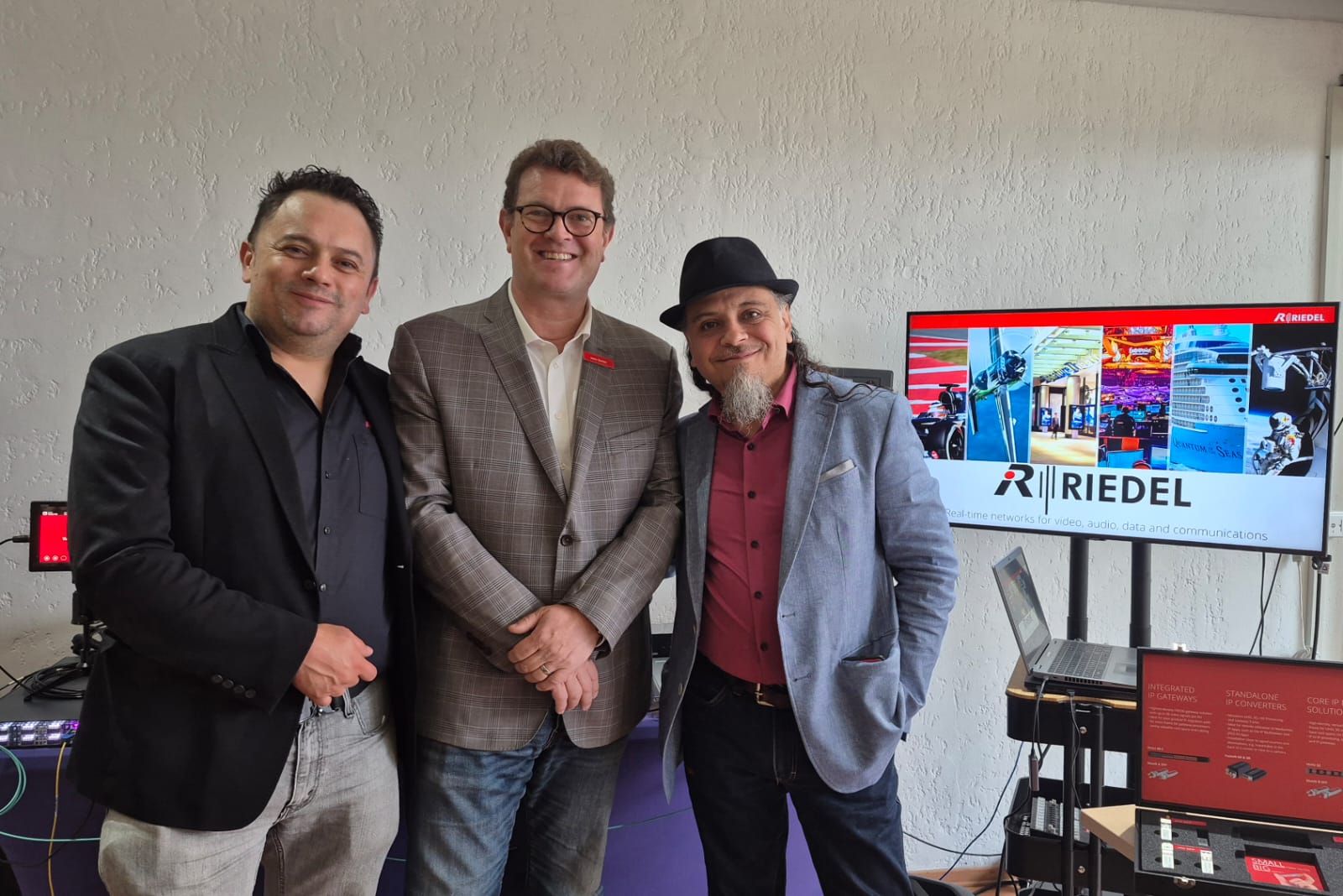 Hosarsiph Ortega, Jason Barden, director de ventas para América Latina & Hugo Caviedes, Product Expert, de Riedel Communications.