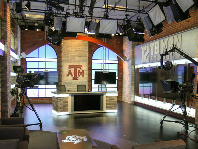 El campus de A&M en College Station, Texas, dispone de siete instalaciones deportivas, repartidas por todo el sitio, que albergan hasta 110 eventos al año. Además de ofrecer salidas de transmisión de cualquier evento en cualquier lugar, 12th Man Productions, también ofrece entretenimiento e información en la pantalla grande en el estadio.